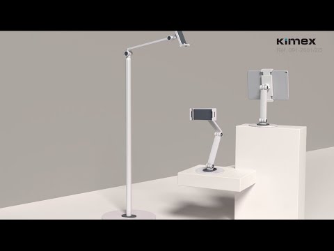 The KIMEX 091-2603 floor stand is a universal solution for all tablets and smartphones between 4.7'' and 12.9''. The 091-2603 model consists of a floor stand and an adjustable bracket for your tablet. This bracket has a spring-loaded, highly adjustable 2-leg system that allows your tablet to be hugged effectively. Functional, it is adjustable (+210°/-60°), tiltable (+/-52°) and swivelling (360°) as you wish to adapt to all your configurations and to provide you with the best comfort of use. With its design and cable management system, the KIMEX 091-2603 floor stand is suitable for any professional or home use that requires a solution that is easy to install and use, and that offers a modern and neat finish.