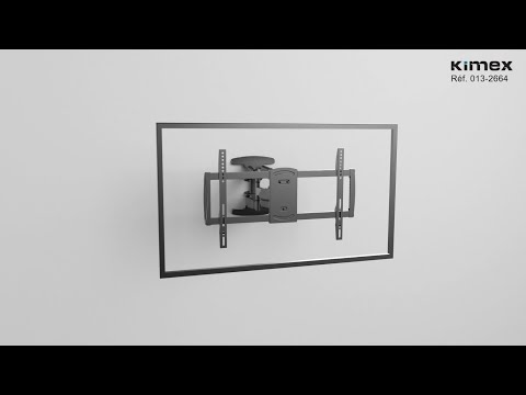 El soporte de pared KIMEX 013-2664 está diseñado para montar una pantalla de TV de 37" a 86" compatible con el estándar VESA (200x200 min, 600x400 max). Equipado con un sistema giratorio de doble brazo que soporta hasta 45 kg, permite inclinar (+2/-15°) y girar (120°) su pantalla según sus necesidades, y alejarla de la pared desde sólo 4,9 cm (soporte plegado) hasta 48 cm (soporte desplegado) para ofrecerle una amplia gama de movimientos y un fácil acceso a su parte trasera. Esto hace que el soporte KIMEX 013-2664 resulte ideal tanto para uso doméstico como profesional como una solución sólida, moderna y muy funcional.