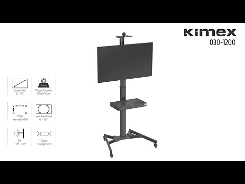 Le support mobile KIMEX 030-1200 est conçu pour accueillir des écrans de 37 à 70" répondant aux standards VESA (200x200 min, 600x400 max), jusqu'à 50 kg. Ce support professionnel est composé d'une base de sol équipée de roulettes pour une parfaite mobilité, et d'un mât robuste sur lequel vous pourrez régler facilement le niveau de votre écran de 120 à 160 cm (centre écran). Le support 030-1200 est complètement modulable, il permet d'incliner votre écran (+5/- 12°) et de le positionner en mode paysage ou en mode portrait en toute facilité pour s'adapter à tous vos besoins. Il dispose enfin de deux étagères amovibles et réglables en hauteur, la supérieure, pour accueillir une caméra de visioconférence, la médiane, vos accessoires audiovisuels. Le support de sol KIMEX 030-1200 est donc une solution idéale pour une utilisation active en milieu professionnel dans des bureaux pour de la visioconférence ou pour équiper un salon d'exposition.