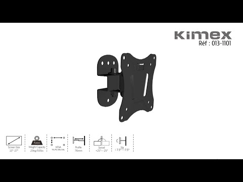 Il supporto a parete KIMEX 013-1101 è progettato per sostenere uno schermo TV standard VESA (75x75 e 100x100) da 13" a 27" con un peso massimo di 25 kg. Questo supporto è dotato di uno snodo che consente di girare e inclinare lo schermo a seconda delle esigenze, lasciando uno spazio di 7,6 cm dalla parete per facilitare l'accesso alla parte posteriore dello schermo. Facile da installare, la piastra di montaggio VESA sul retro dello schermo è indipendente dalla parte a parete: si fissa la base alla parete, quindi la piastra al retro dello schermo, che viene poi avvitato alla base a parete. Il supporto a parete KIMEX 013-1101 è quindi ideale sia per i privati che per i professionisti alla ricerca di una soluzione facile da installare, robusta e che offra una grande flessibilità di utilizzo.